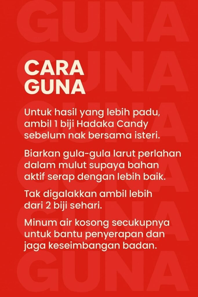Hadaka Candy ialah gula-gula khas untuk lelaki yang diformulasikan bagi membantu tingkatkan tenaga, stamina dan keyakinan dalam hubungan suami isteri.